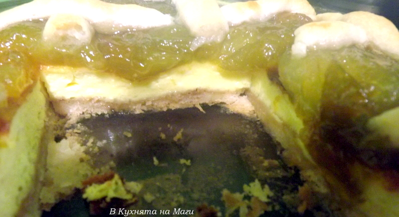 След като тестото се сипе във формата се слага по 1 чаена лъжичка течен шоколад отгоре